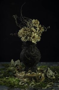 Through sculpture and photography, I use natural elements gathered from wild places or my Scottish garden to create still life works that reflect these experiences.