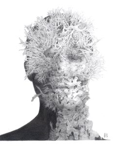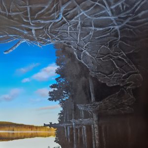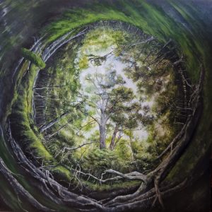 Lately, I’ve been experimenting with new surfaces and materials—combining panels, gesso, oil paint, charcoal, and pencil to push the effects I want to achieve. Though the natural world is rich in colour, my monochrome drawings strip away distraction, focusing instead on structure, layers, and the deep entanglement of life forms. The result is work that is both scientifically precise and slightly surreal—a space where human experience and the more-than-human world merge.