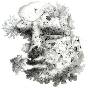 Drawing is central to my process, both as a final artwork and as a research tool. Working from specimens and drawing outside allows me to truly see and understand the intricate structures of bryophytes, lichens, fungi, and wood—fragments of a vast, interconnected world. Each drawing is an exploration, a conversation with these species, learning about their biological significance and their quiet, otherworldly beauty.