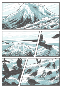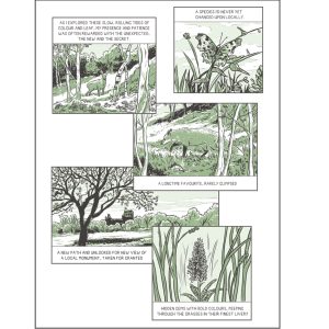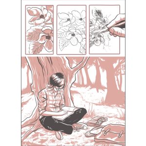 Her personal comics work draws inspiration from the emotional and spiritual journeys we take throughout our lives, with stories featuring growth and reflection, with a focus on glancing backwards, in order to look ahead. The artwork is bold and simple, with nature playing a large part in her stories.