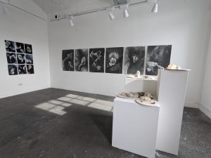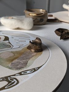 I engage an intentional intermedia approach that enables an iterative mode of working at an intersection of various media. These include drawing, installation, fibre art, printmaking, creative writing, metal casting, and ceramics. Imbued with intimacy and texture, these materials, when gathered together, can be used as imposition or invitation, can fuel the ego-centric, or bring together a community of like-minds. Offered as an invitation, my practice holds space for dialogue; to share ideas, shift perceptions, and reconsider human relationships with one another and our other-than-human-kin.
