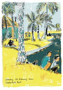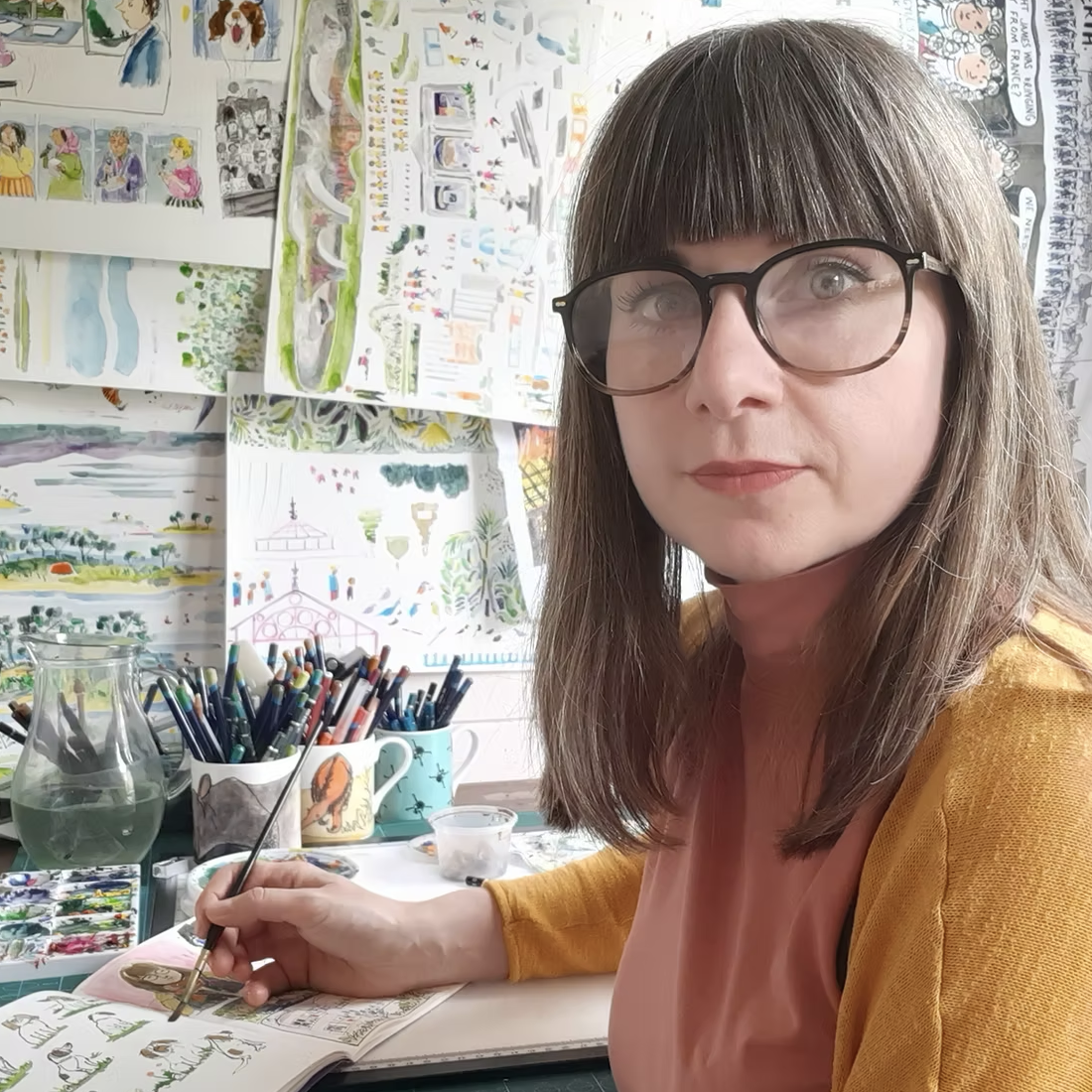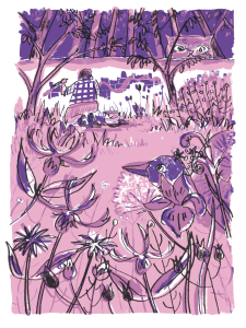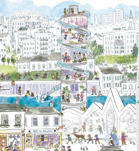 I delight in noticing new features in familiar spaces and I love to share this joy through my work, creating subtle visual jokes and tiny details as a reward for those who pay attention. When I am not drawing you might find me running round a cemetery chasing rabbits, walking with my dog, or talking to the plants in my garden (they are sick of my chat).