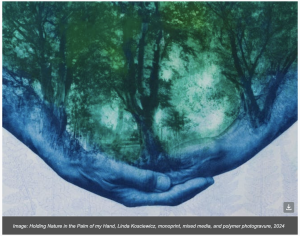 Linda Rosalia Kosciewicz was born in Scotland and trained in painting at Duncan of Jordanstone College of Art, Dundee followed by fine art painting conservation at Northumbria University. She worked for many years as a conservator in Australia and in Scotland for Government and also as a policy maker for national government. Her art practice encompasses photography, printmaking, mixed media, video, sound, music, and drawing.