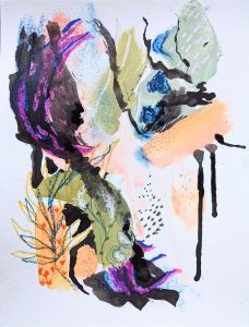 As an abstract artist, I try to capture the spontaneity and flow often seen and felt in nature, attempting to capture the intangible through, colour, form and texture within my work. This desire to be grounded into the land but reaching for dreamscapes means my work is often built in multiple layers using mixed media such as acrylic, watercolour, ink, as well as, working in digital illustration. Sometimes paintings start with sketches or photography on location or created from the imagined on a variety of substrates from my small home studio. Each piece can be explored in infinite ways, but the intention is always the same – to seek joy in the everyday.