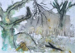 Sara Davies lives on the edge of the Peak District in England but continually feels drawn to being in Scotland, maybe because of her family’s Scottish heritage, and visits often. She has always been a creative using visual arts and the written word to express her relationship with the natural world. She enjoys immersing herself in nature by wild swimming and walking, and making art outdoors as often as possible.