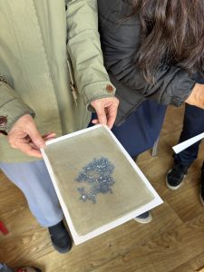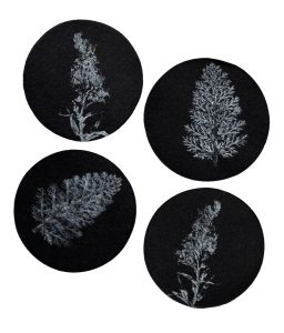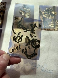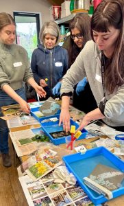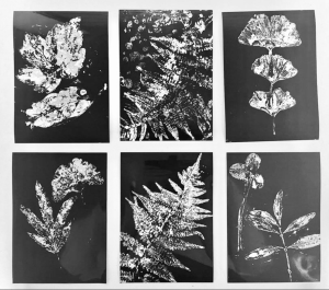 I delivered two creative taster sessions at Ninewells Community Garden in February, to the groups brought together for a full day of discussions and planning around the REALITIES / Flourish project. The wood burning stove kept us warm in the Garden’s enclosed space. Meeting room quickly turned into workshop space and, having mindfully picked up some leaves and other bits of natural materials on a tour of the garden, participants made vaseline prints on photographic paper.
