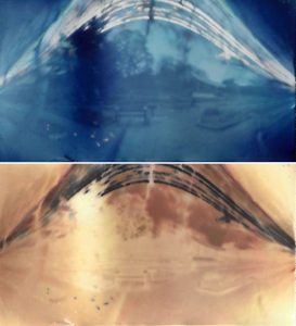 I also installed 2 mini pinhole cameras facing south to capture the sun’s trails over a period of weeks. These fugitive images on darkroom paper were then scanned and inverted digitally, with these results: