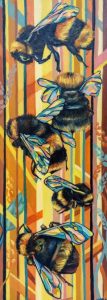 Once the participants had finished their first drawings, I demonstrated how hairspray can be used to fix your drawing in place, so the chalk doesn’t rub away latter. We then explored different papers, the variations of colour and texture leading to different artistic outputs.